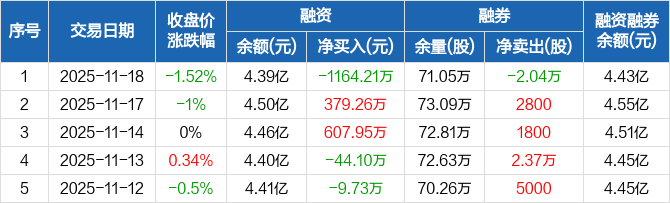 彩虹股份:融资净偿还1164.21万元,融资余额4.39亿元(11-18)