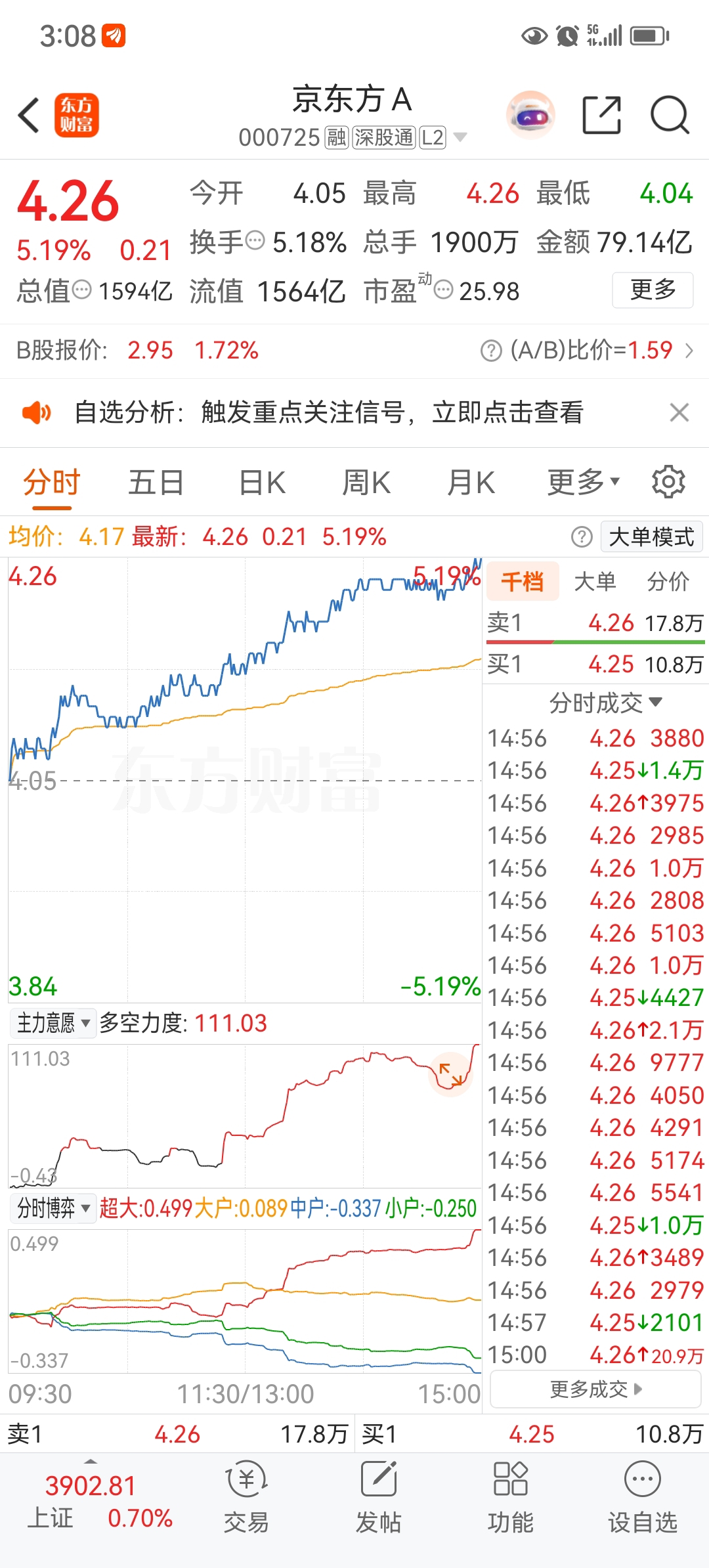 京东方A抢筹79亿