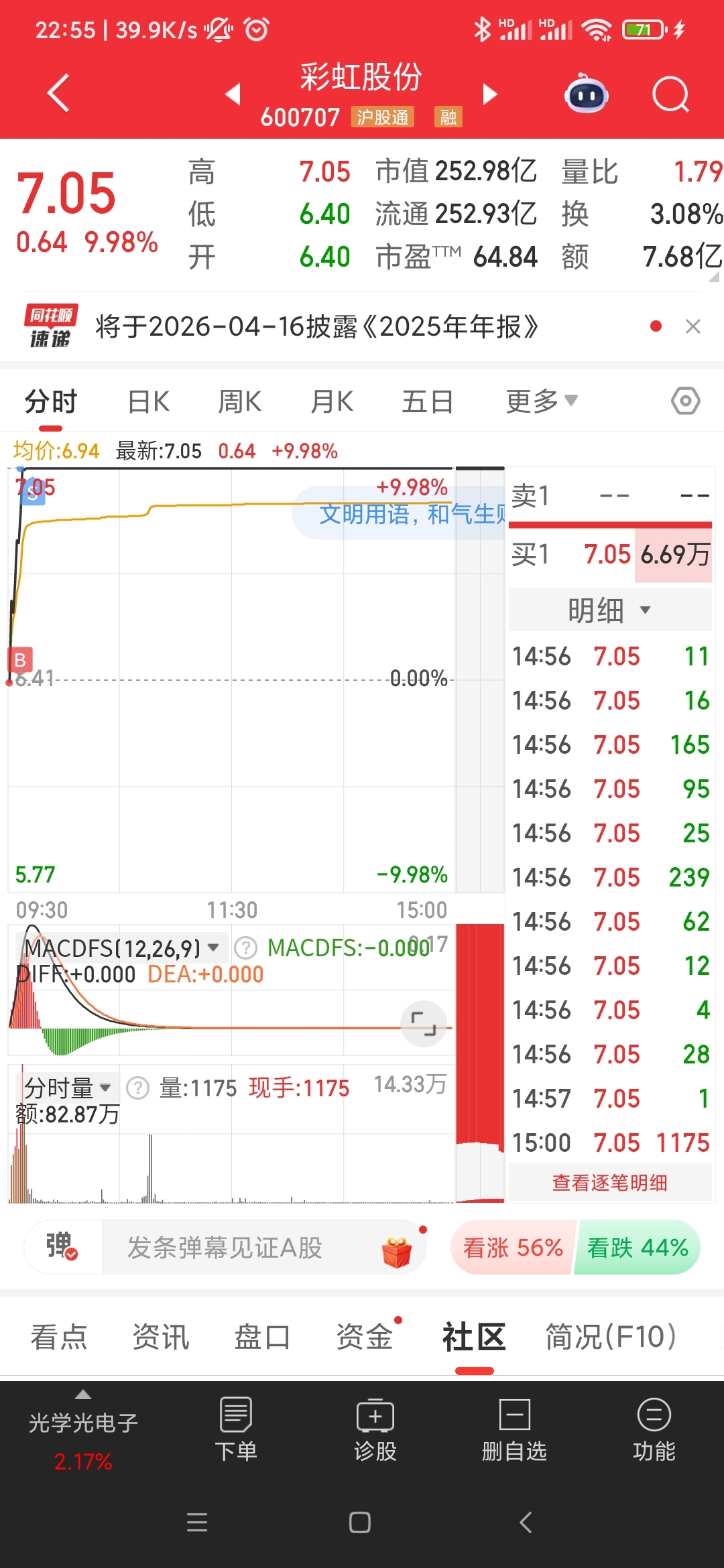 $彩虹股份(SH600707)$ 今天做个T,继续看好