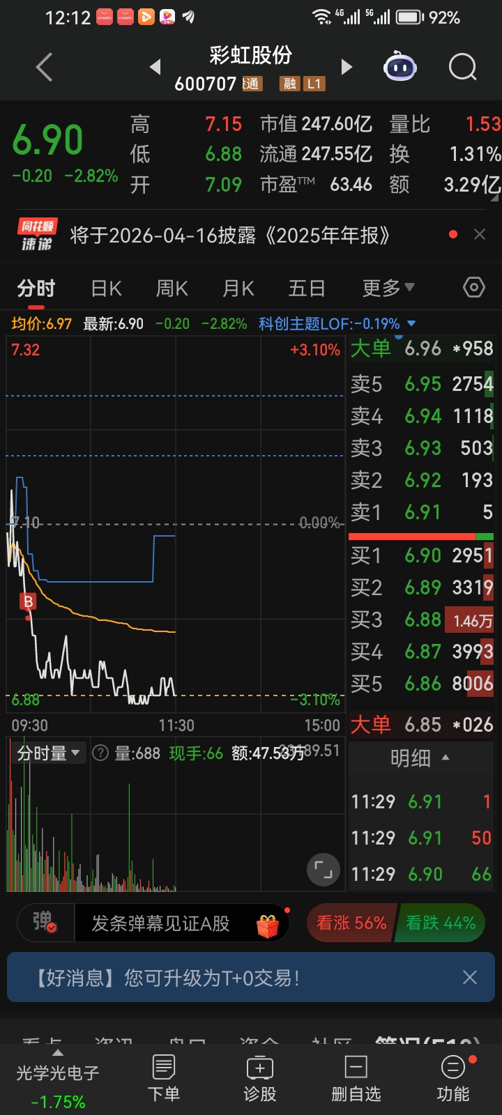 $彩虹股份(SH600707)$ 周五市埸获利码98%,必然大部分获利码吐槽。