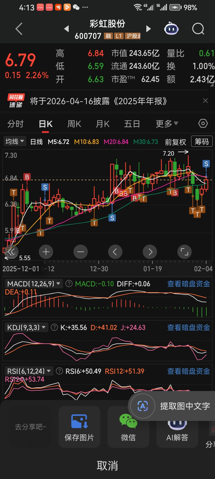 $彩虹股份(SH600707)$ 轻装路上,忽悠盘面浮码与茯利码槽离场。