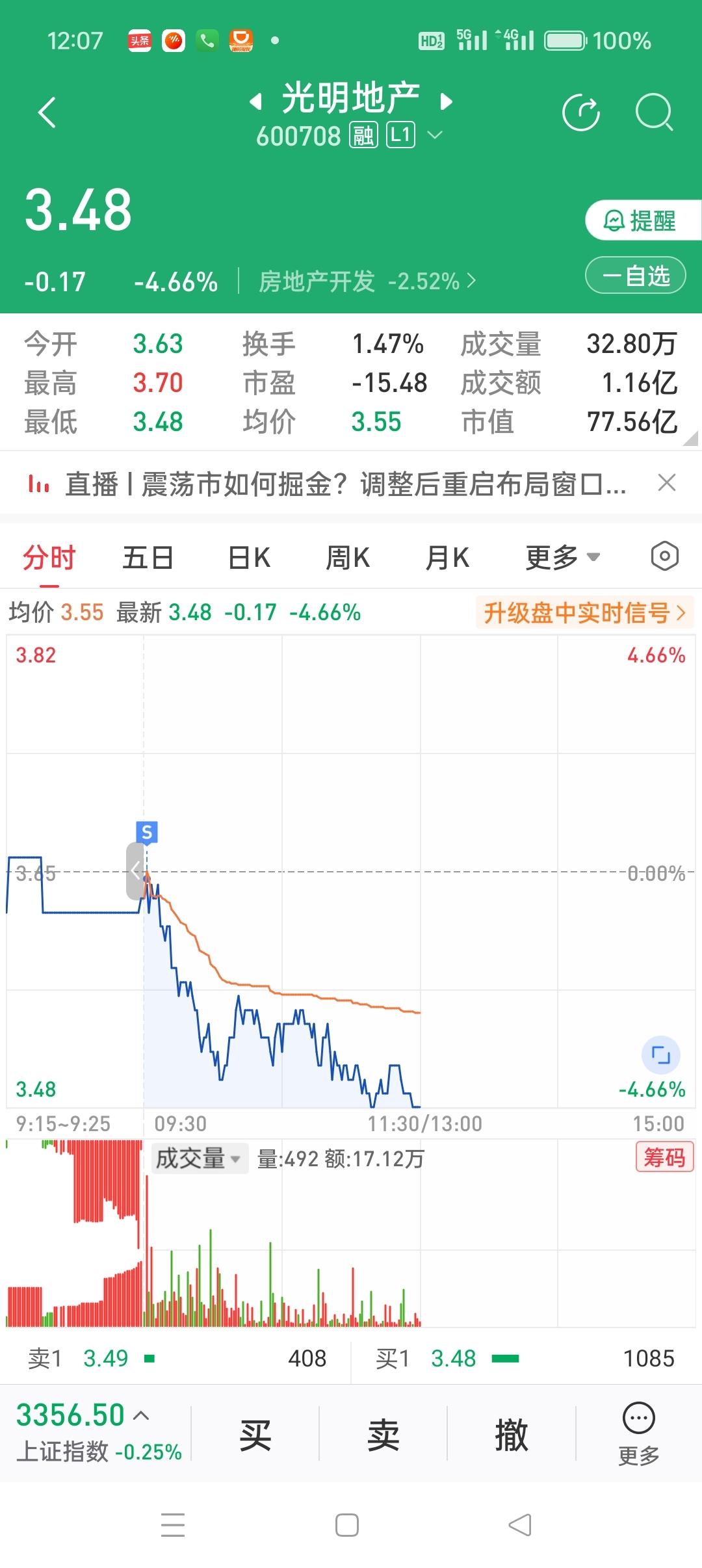 $光明地产(SH600708)$ 反正我一开盘三块6毛9就全部清仓了,我知道今天要补跌。
