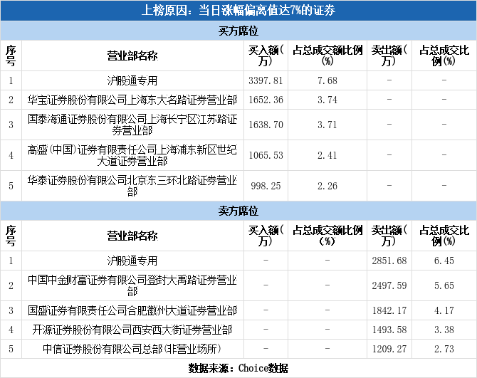 沪股通现身龙虎榜,光明地产涨停(10-22)