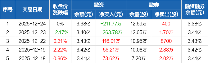 光明地产:融资净偿还211.77万元,融资余额3.38亿元(12-24)