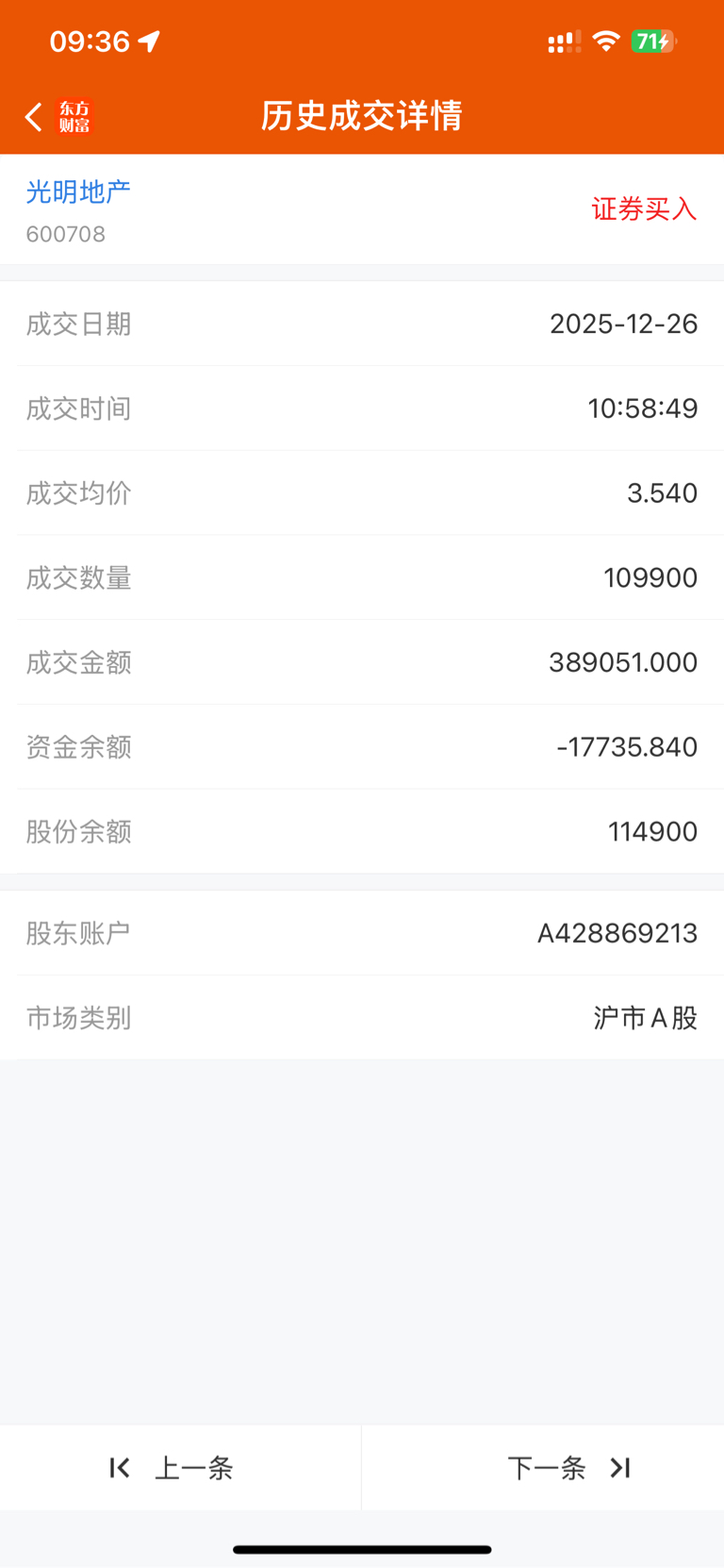 $光明地产(SH600708)$ 年纪大了,己八十出头了。上周五(12月26日)现在想来还有点后怕,当时点错了按钮,把原打算卖出的全仓3.54元/1万股,错成了全仓余额买进 3.54元/11万股。当时很着急,就发个贴,想了解一下情况。结果还是还是完满,虚惊一场,最后赚了近10亇点。以后做股票,一定不要再点错按钮,将卖出变买进,运气不是每次都好的。