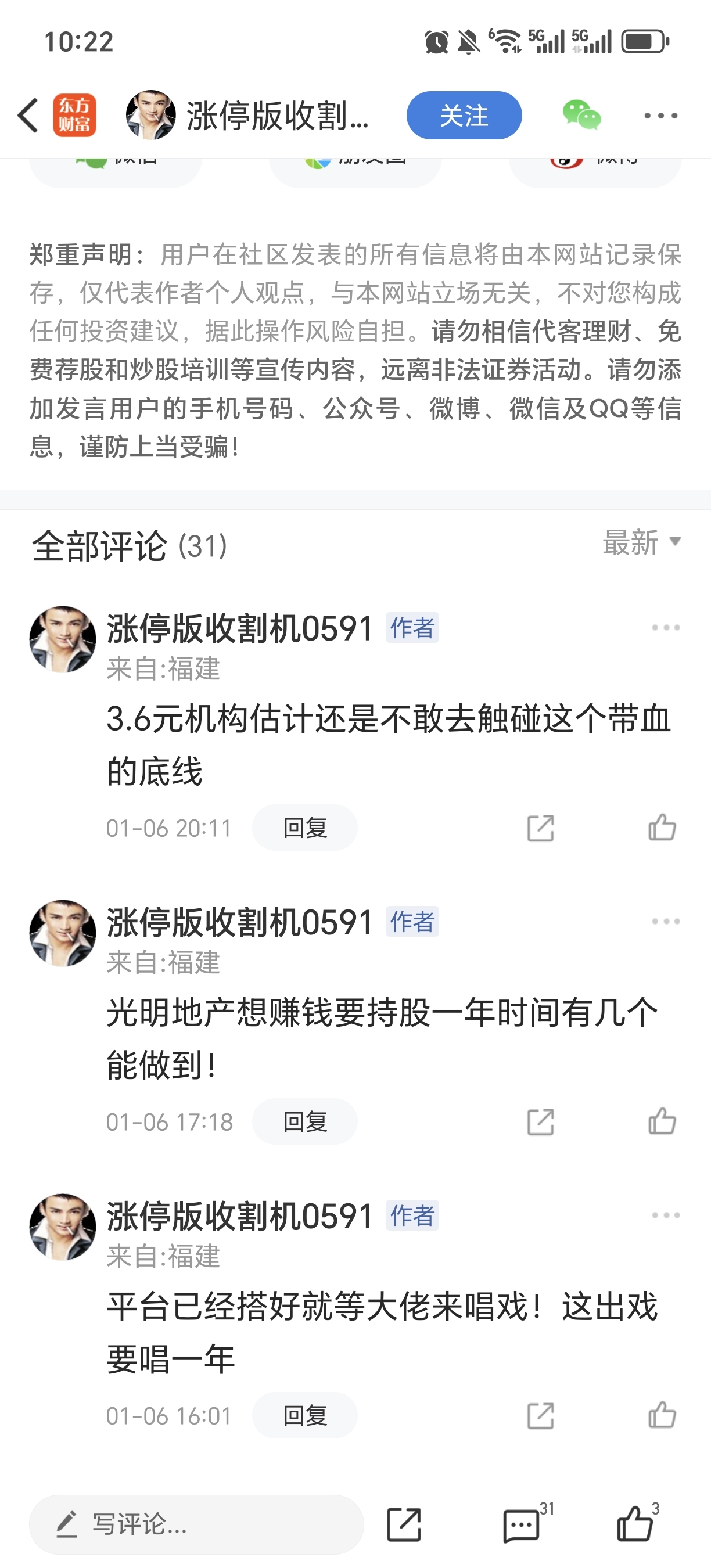 温馨提示: 1.根据《证券法》规定,禁止编造、传播虚假信息或者误导性信息,扰乱证券市场;2.用户在本社区发表的所有资料、言论等仅代表个人观点,与本网站立场无关,不对您构成任何投资建议。用户应基于自己的独立判断,自行决定证券投资并承担相应风险。《东方财富社区管理规定》