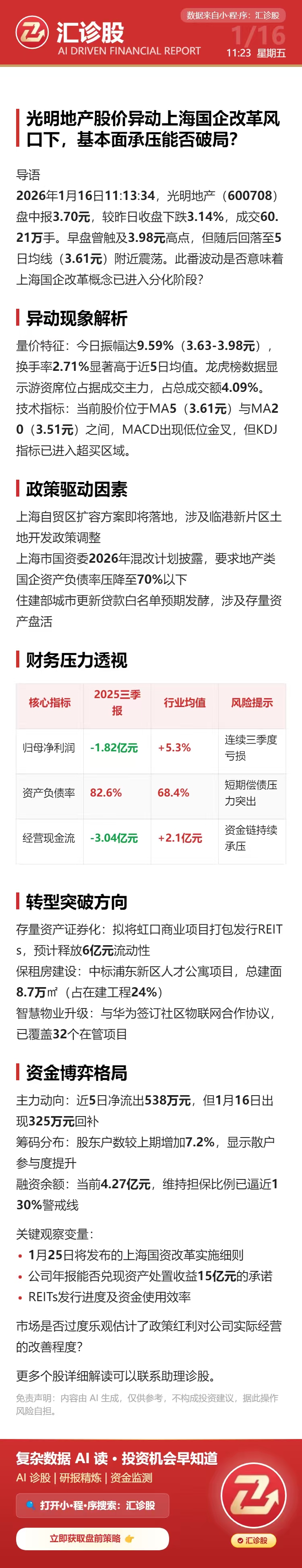 光明地产股价异动,上海国企改革风口下,基本面承压能否破局?