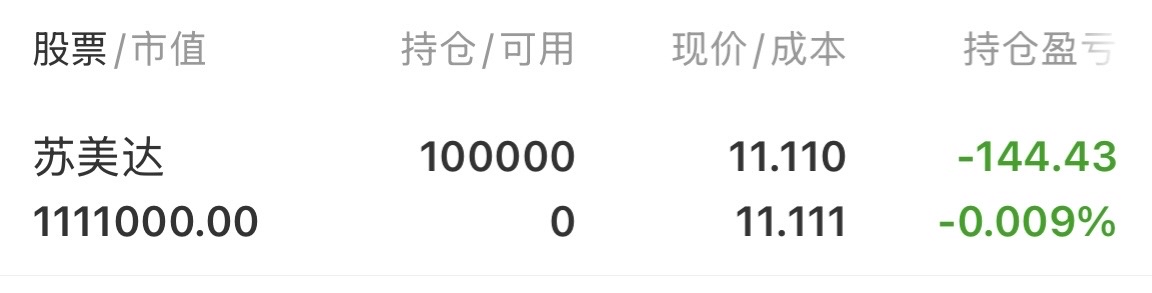 在11.11日,在11.11买了111万苏美达,成本也是11.111我手机号后四