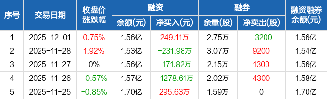 苏美达:融资净买入249.11万元,融资余额1.56亿元(12-01)