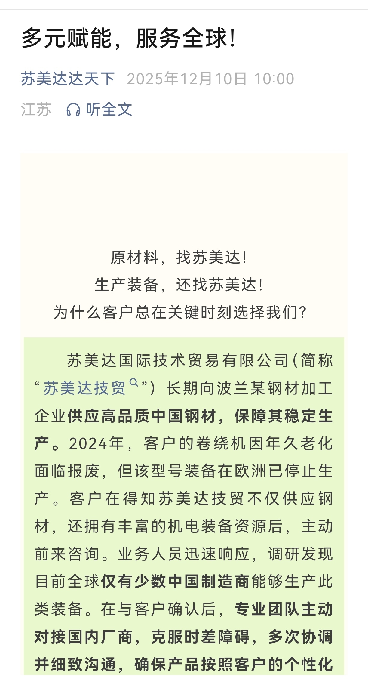 做全球所有的贸易生意,我们苏美达国际集团技贸公司是认真的!宗旨:买全球,卖全球,您有需求,我完美服务到位。