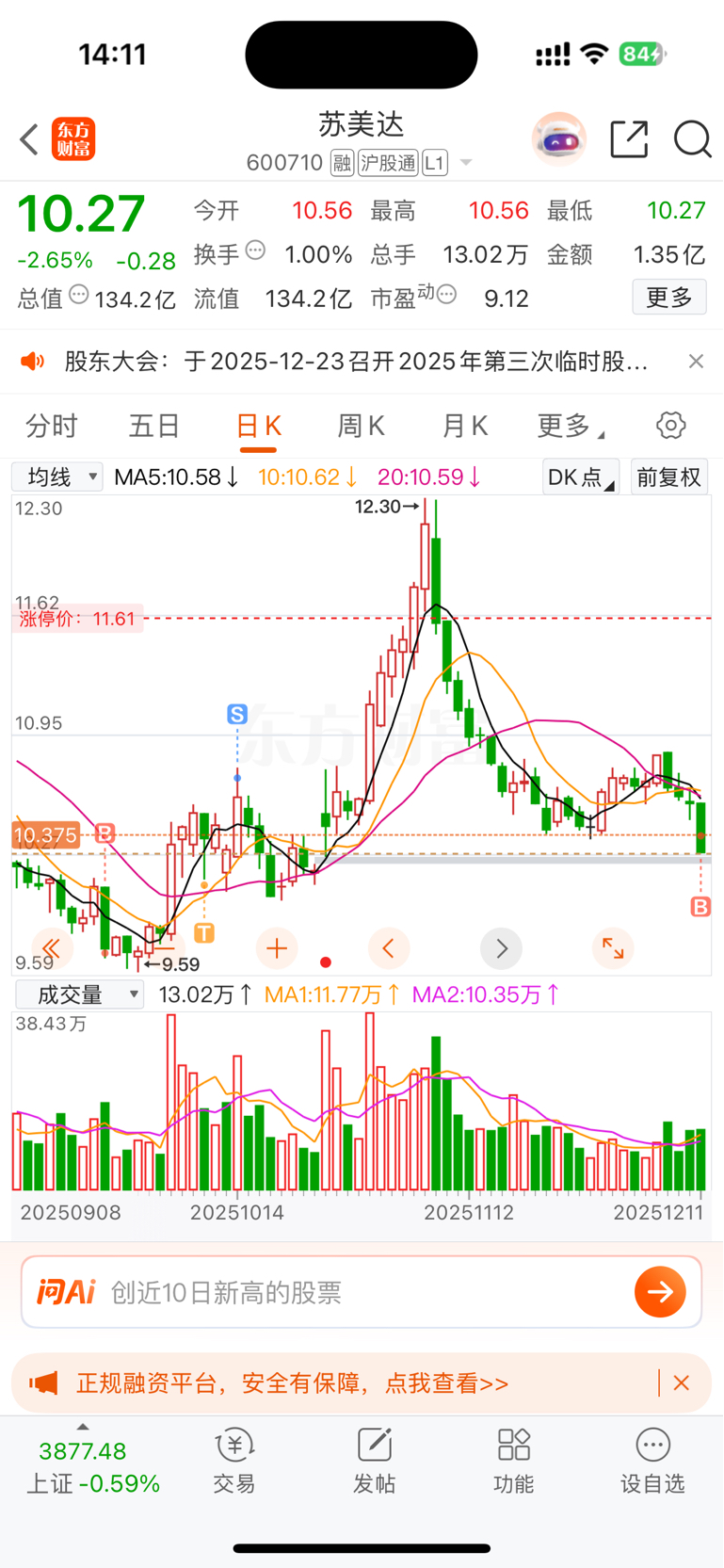 $苏美达(SH600710)$ 上次补的太急,这次在来试试