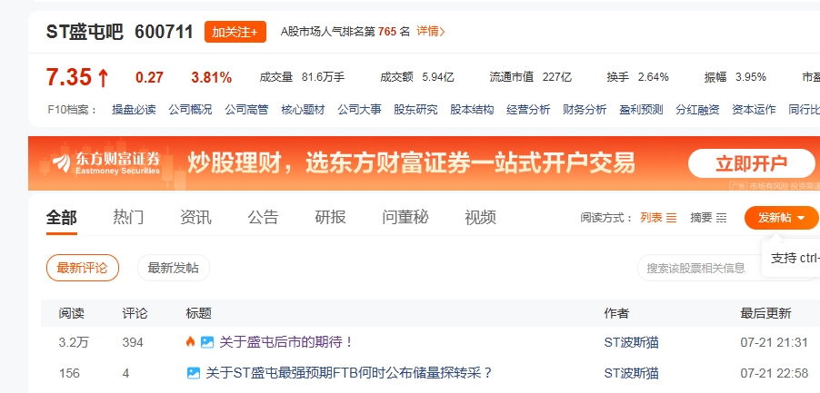 ST盛屯经过一周调整后正在收复高地!破7.46就在弹指一挥间!继续保持震荡上行!中期趋势明显看多!猫哥本贴改变价格预估从必破7摸8,改成必上8元。一切交给时间验证!