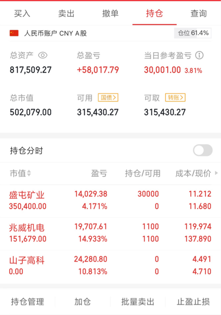 10.10周五操作记录新进:盛屯矿业清出:山子高科持有:兆威机电