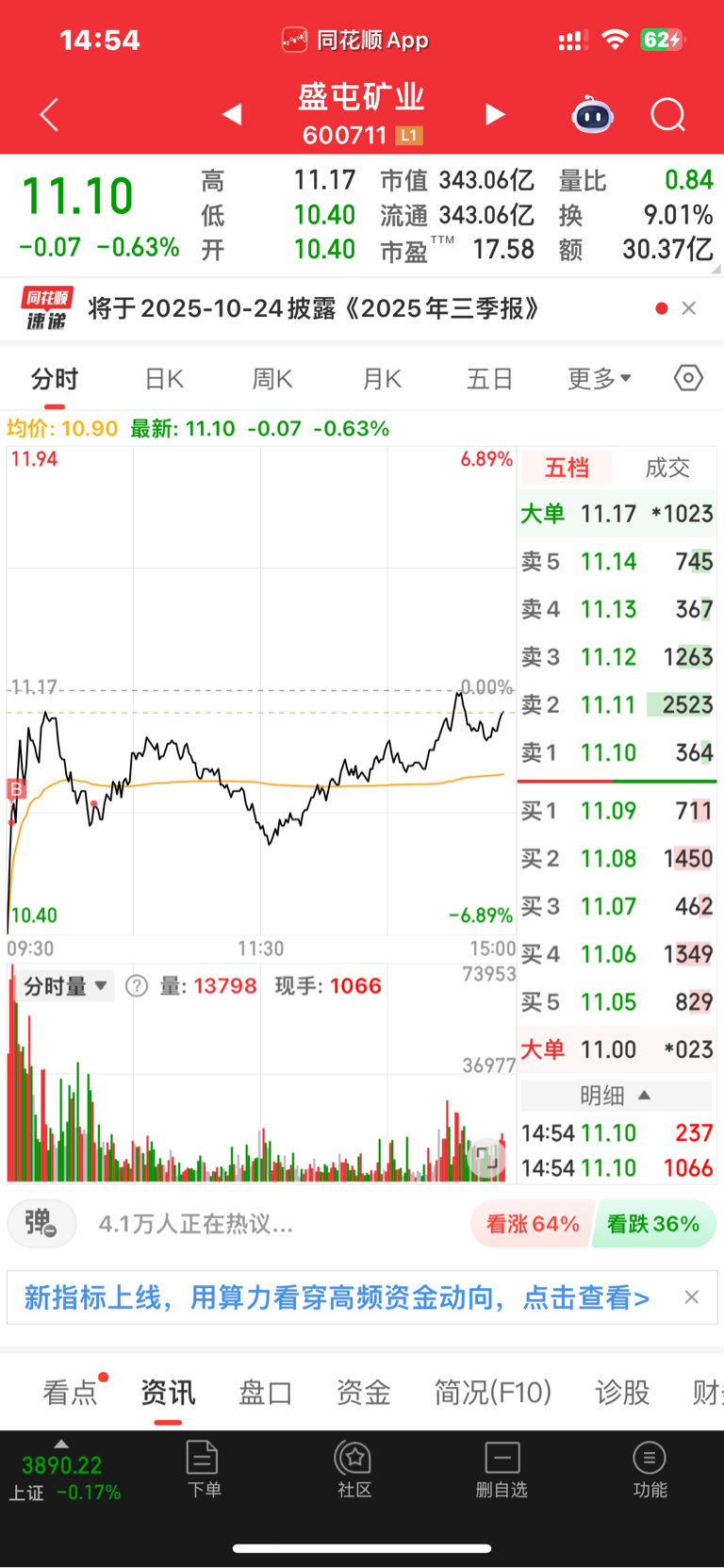 $盛屯矿业(SH600711)$ 今天只要屯屯敢跌三个点我就敢就补满仓