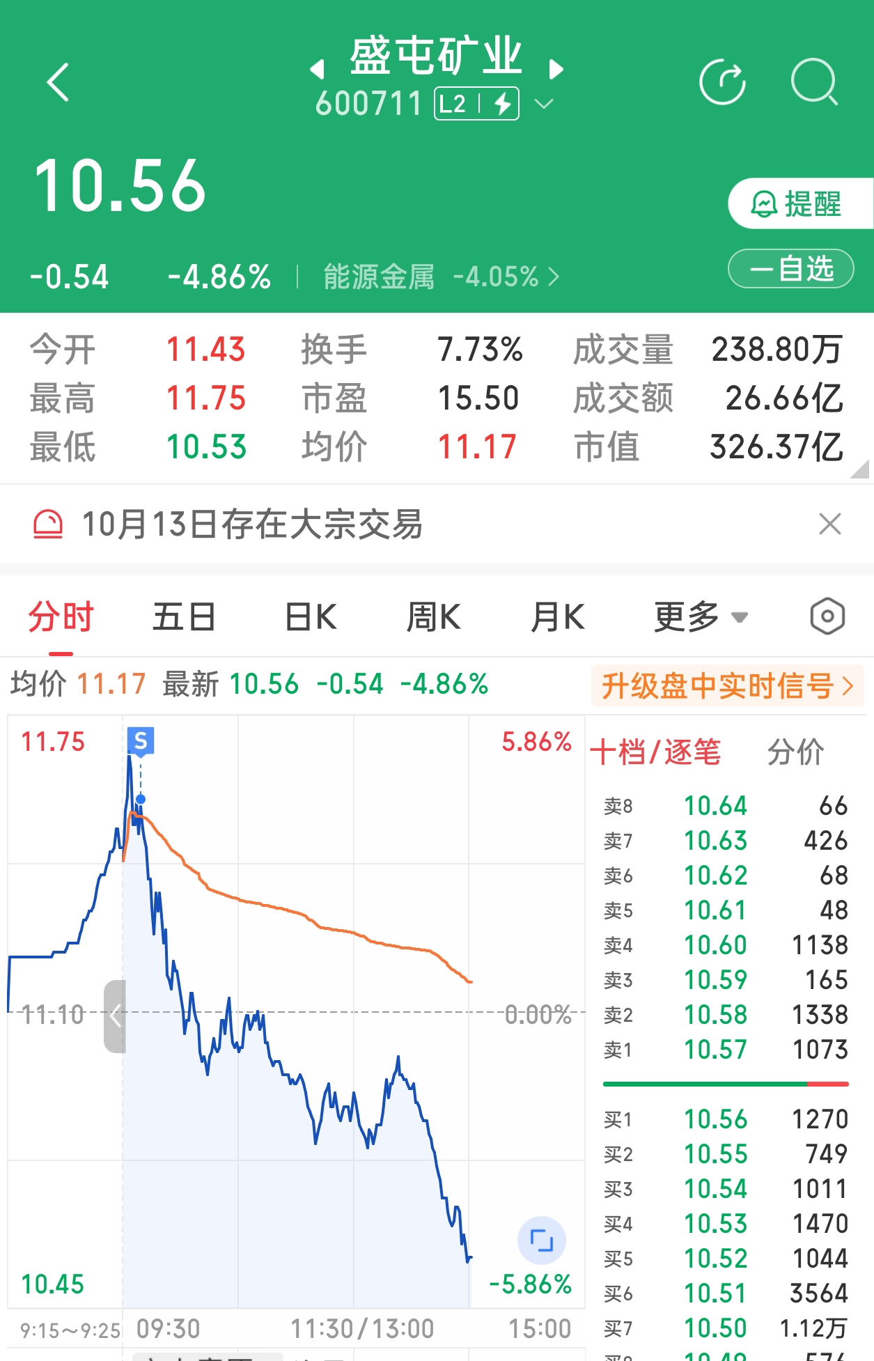 $盛屯矿业(SH600711)$ 还好早上卖了
