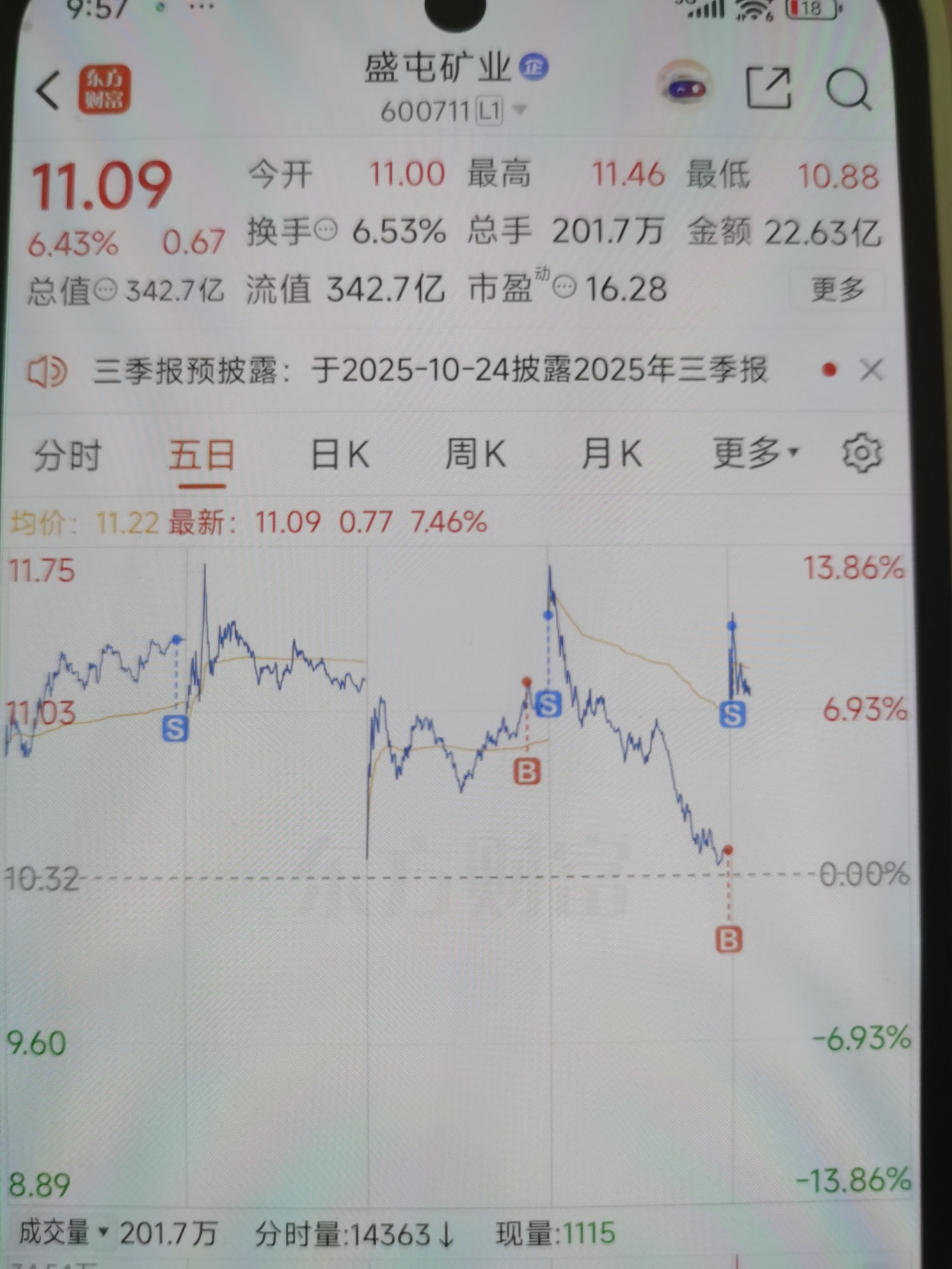 昨天开盘卖,被我老公骂,后来跌成狗样,老公老实了,昨天尾盘接回,早上11.40价