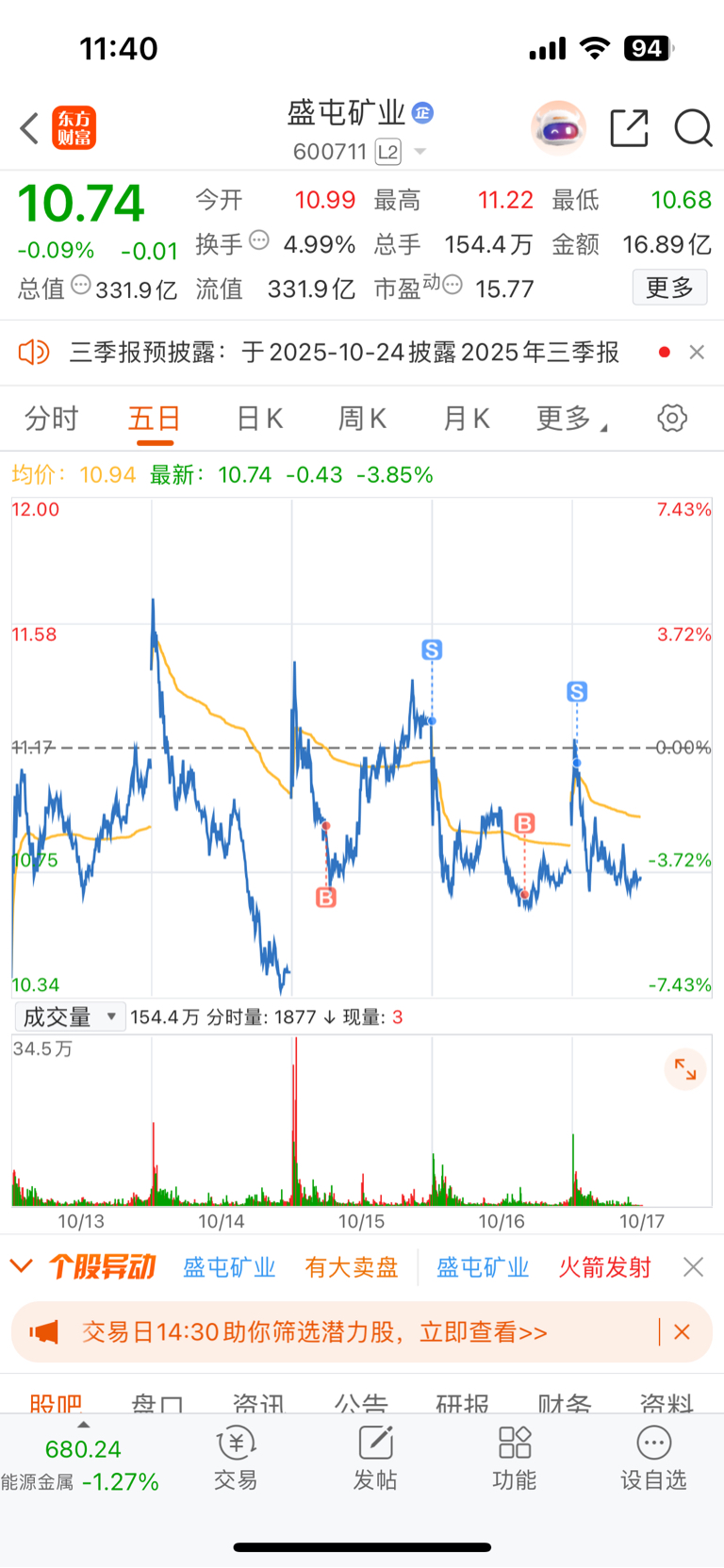$盛屯矿业(SH600711)$ 清仓,换包钢,该强不强就是弱