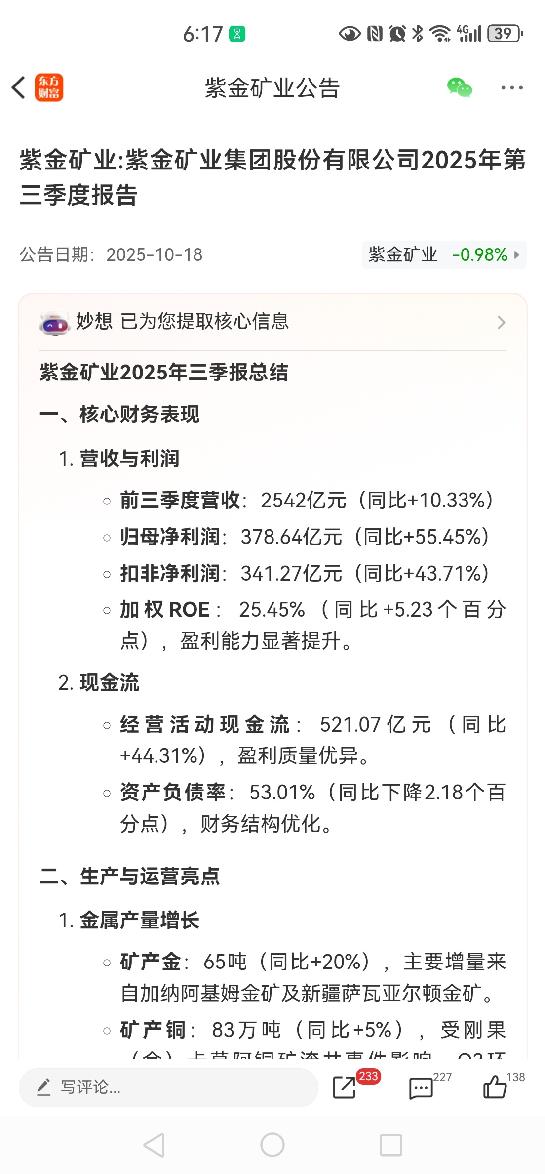$盛屯矿业(SH600711)$ 紫金矿业Q3报55%增速给了盛屯巨大的压力吧,瑟瑟发抖