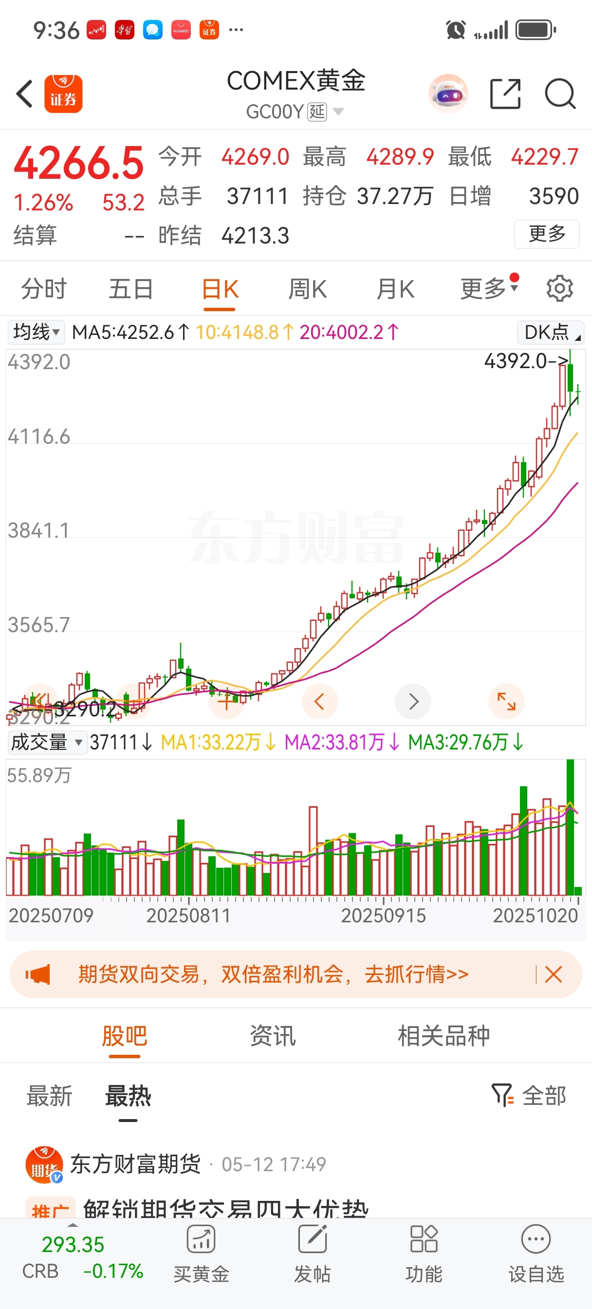 $盛屯矿业(SH600711)$ 黄金期货又往上涨了,坚决持有低市盈率的黄金股盛屯矿业!