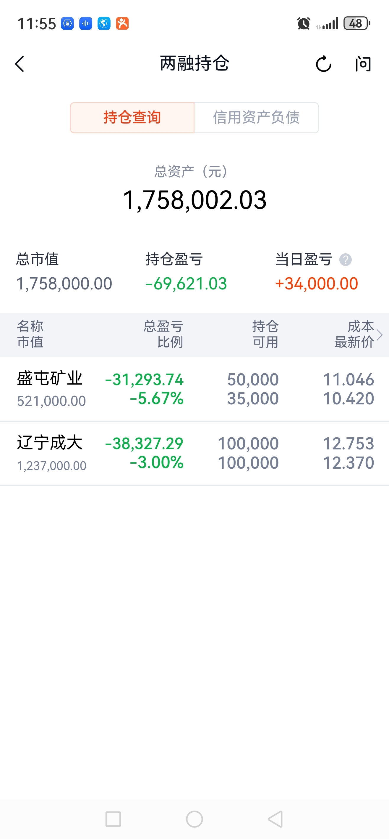 $盛屯矿业(SH600711)$ 这个户里小屯屯仅亏6个点了,我的融不了资,扎心的狠