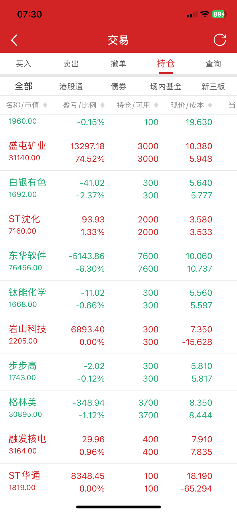 $盛屯矿业(SH600711)$ 黄金白银的大跌其实对有色板块只是短期的利空,长期是没问题的,因为这段时间由于黄金的高位运行,反而有色板块确走很不好,是因为黄金高位存在很大的不确定性,主力和散户都会畏手畏脚,很可能今天花大价钱拉上去,可能明天就会由于黄金大跌就会形成恐慌,所以只有等到黄金大跌,才会对有色板块是利好,反而会有上涨的预期!所以逢低加仓就行了,一个不到一年的新股民的见解!