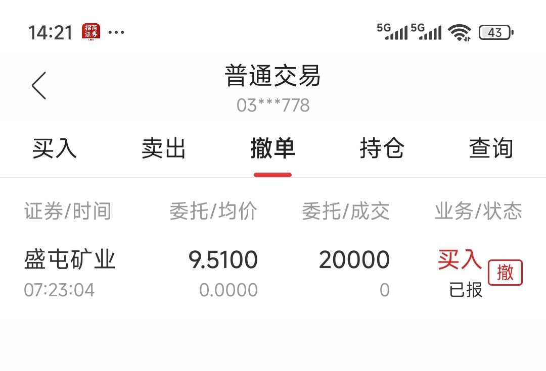 $盛屯矿业(SH600711)$ 一大早挂的9.51,我简直是白日做梦,现在都快过10.51了
