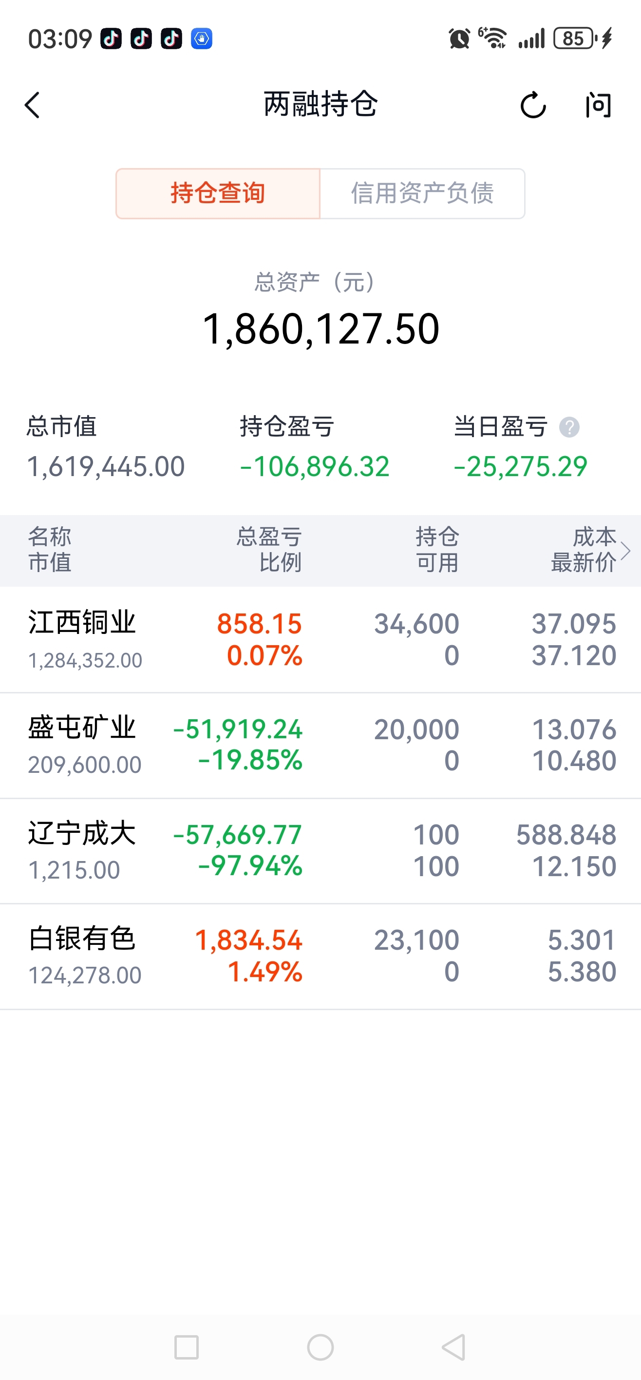 $盛屯矿业(SH600711)$ 割了9.9万垃圾某大,还有24万现金,明天有色谁敢跌补谁。