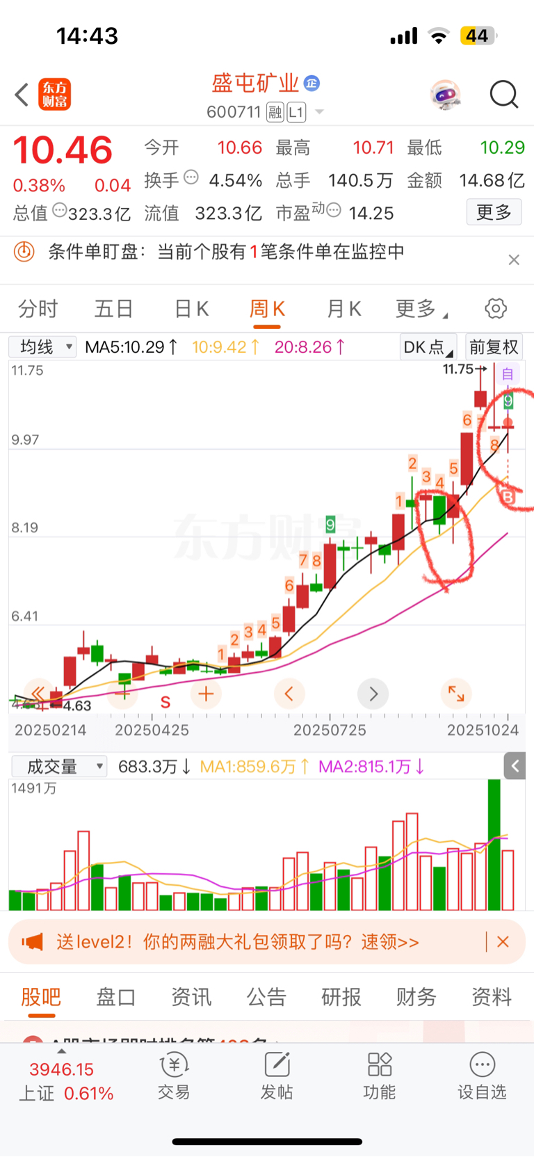 $盛屯矿业(SH600711)$ 金针探底,就像一个拳头要想打的更有力就得往回收