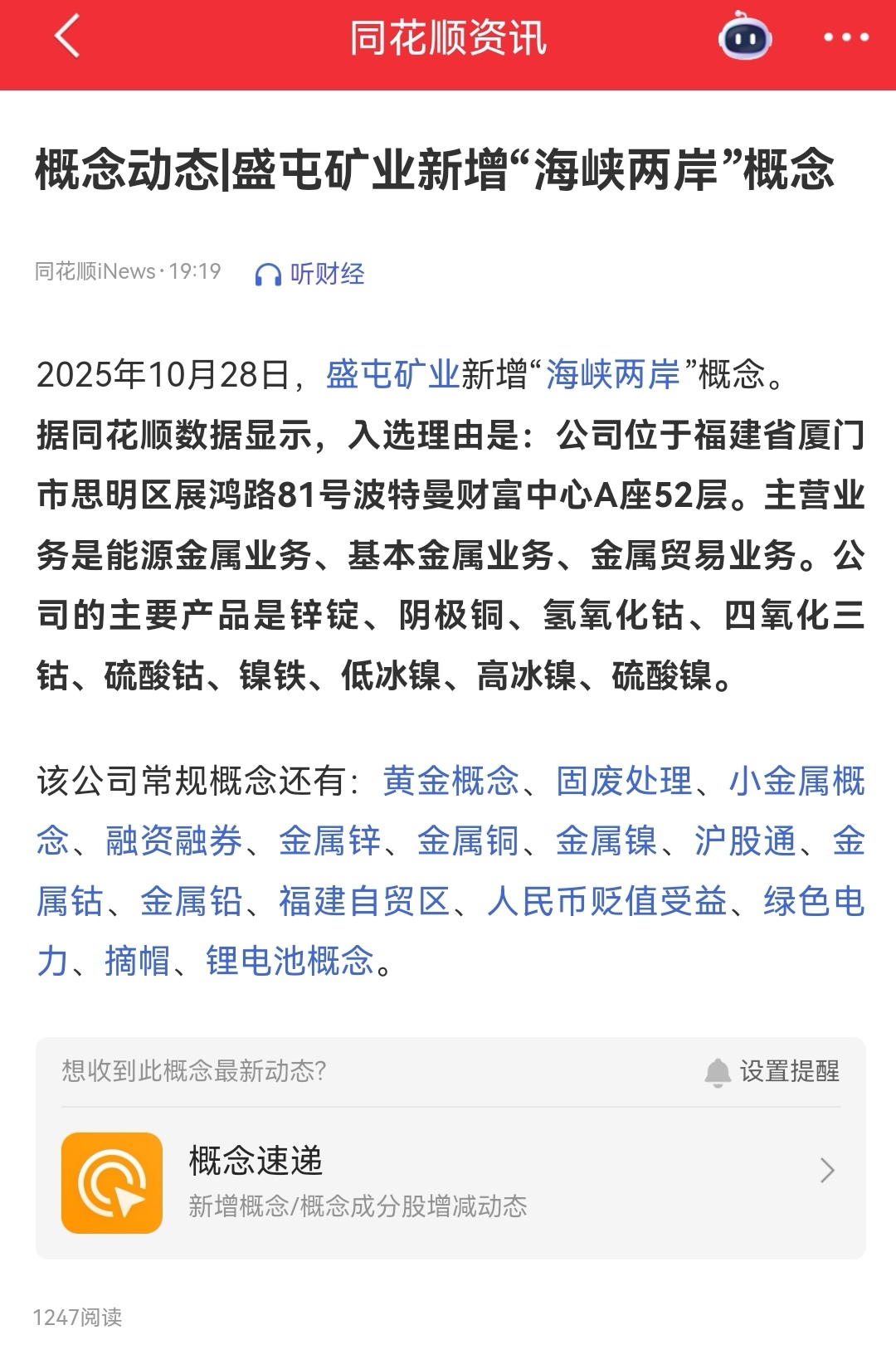 $盛屯矿业(SH600711)$ 盛屯矿业新增“海峡两岸”概念