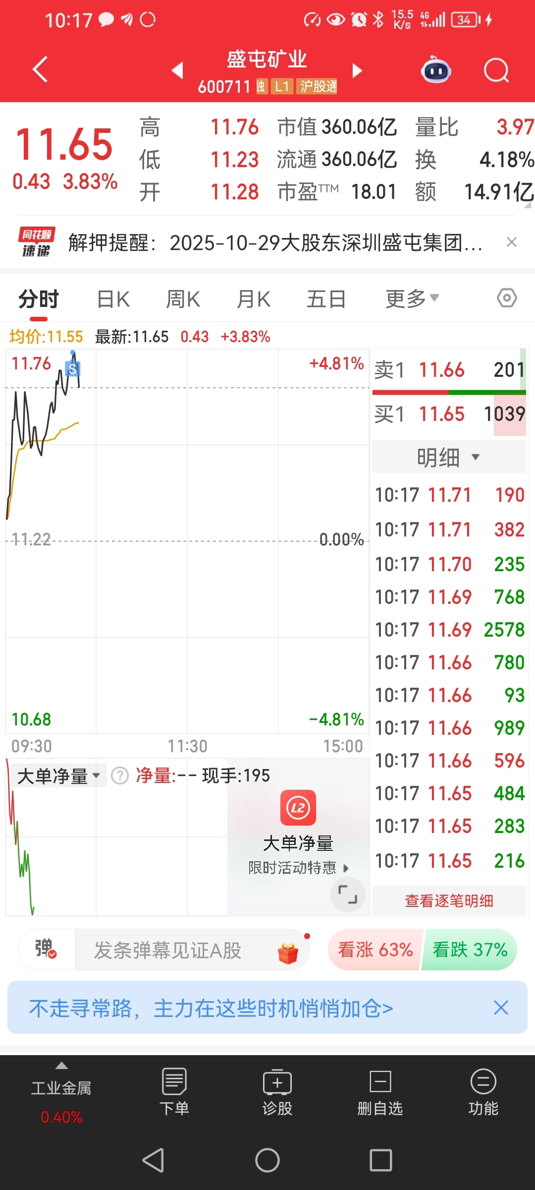 $盛屯矿业(SH600711)$ 虽然一直看好盛屯,但短期获利盘巨大,在持股199天后还是先撤退一下,大盘也会尝试去确认下面的缺口,后续如果盛屯回落较多大家需要支援的时候,再买入了,如果卖飞就算了,有赚就好!