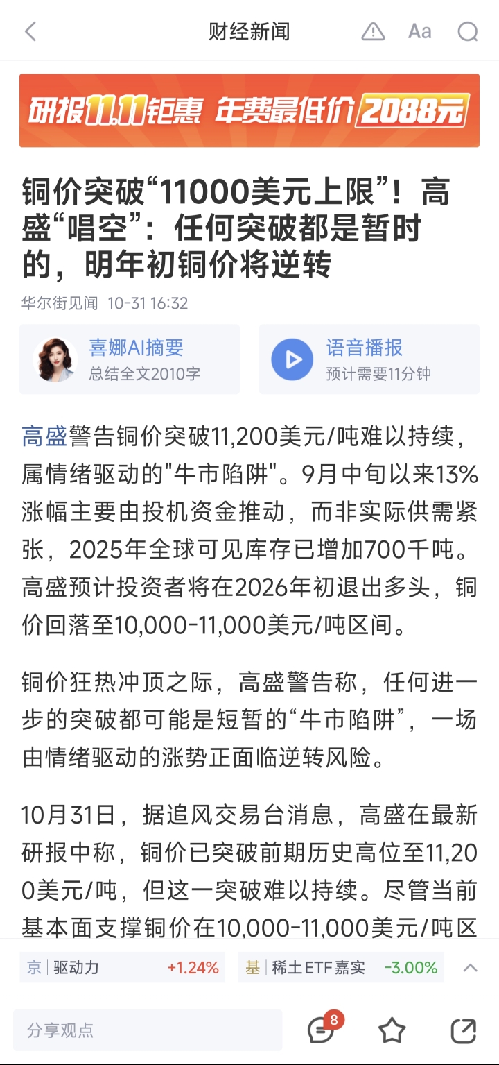 早几天说铜要涨到14000美元,高盛也做短线了,言儿无信,反手多又反手空,信它的饭都没有