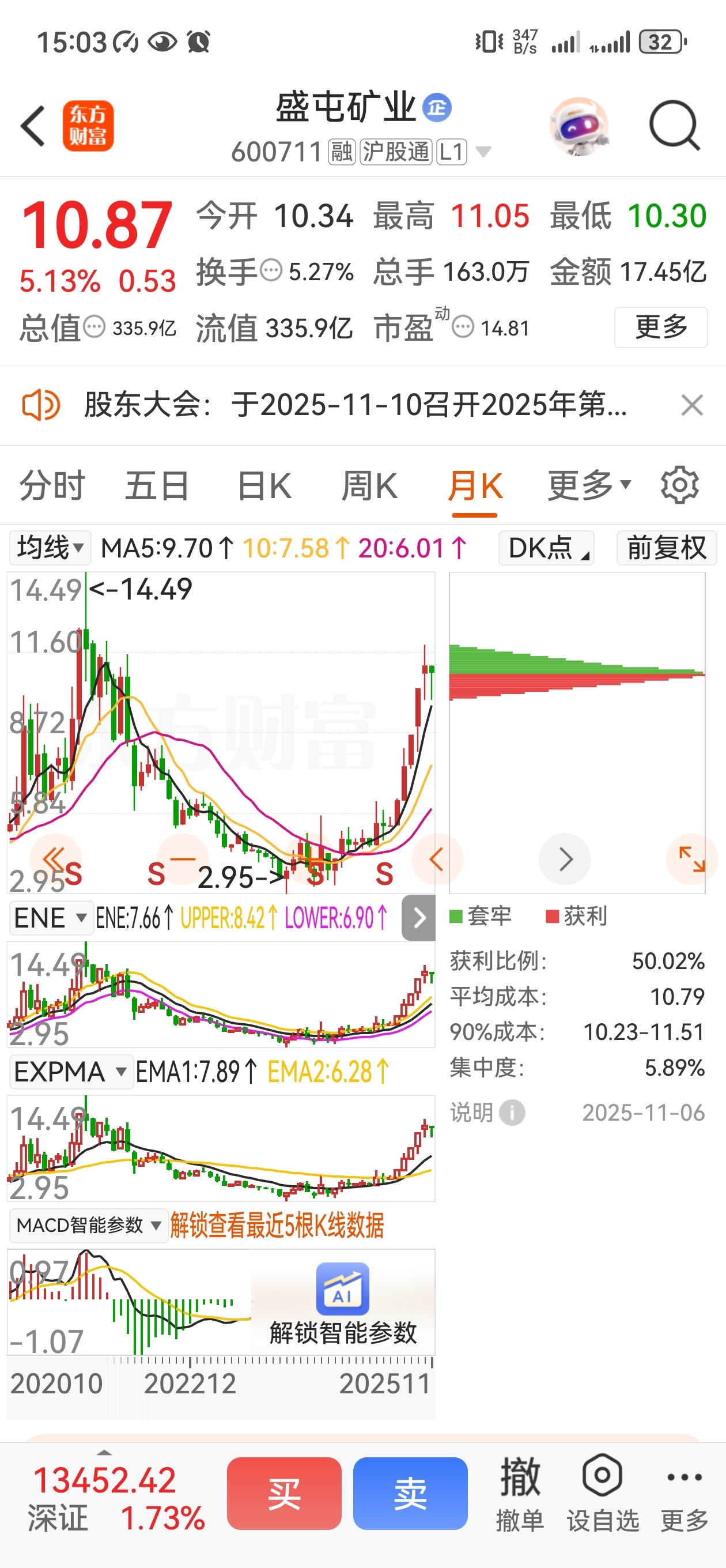 $盛屯矿业(SH600711)$ 看月线走势,也服你们能拿的住!
