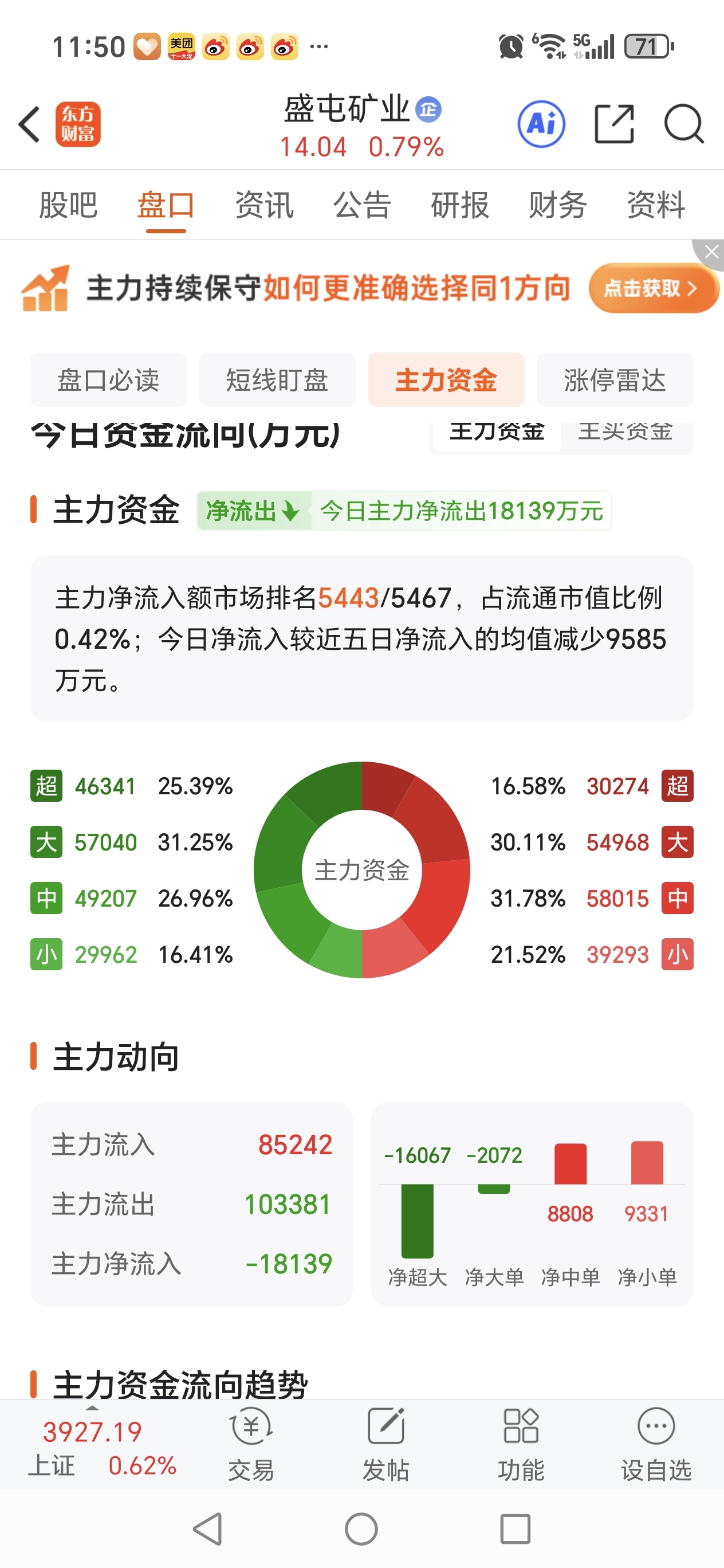 今天上午流出资金量感觉好多,感觉有点不对劲主买资金跑了2亿,主控跑了1亿。思索