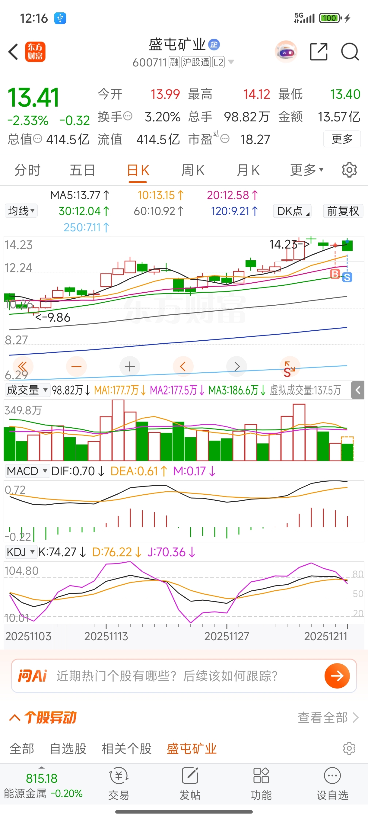 $盛屯矿业(SH600711)$ 果然是一买就跌。