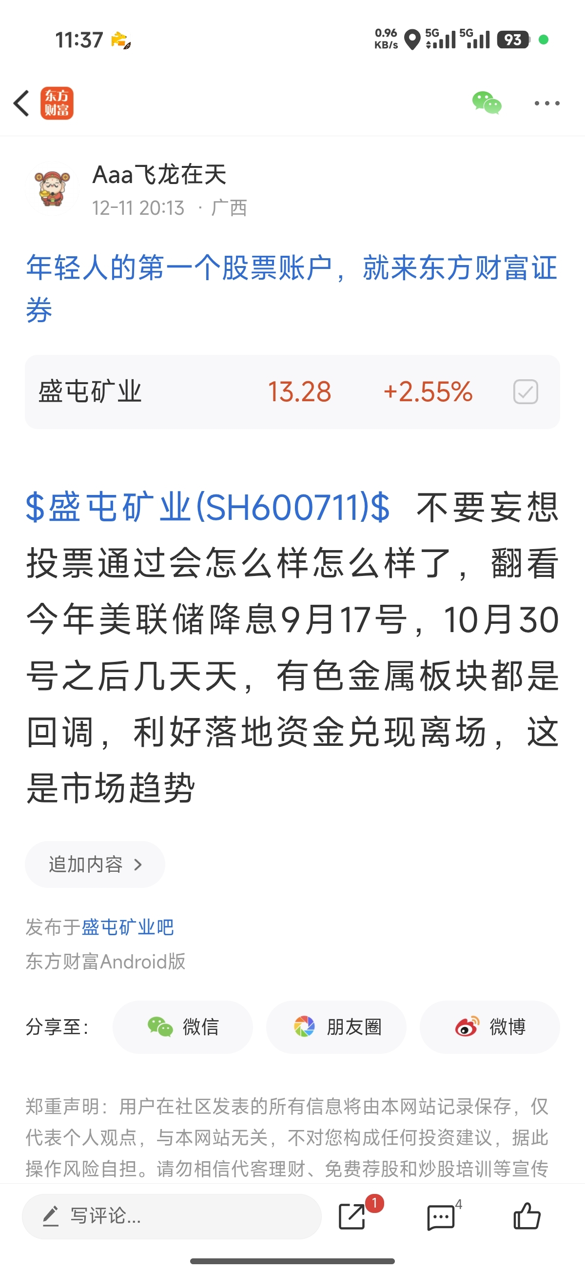 $盛屯矿业(SH600711)$ 唉做不到知行合一啊,虽然减仓了减少了回撤,但还是回撤了一点