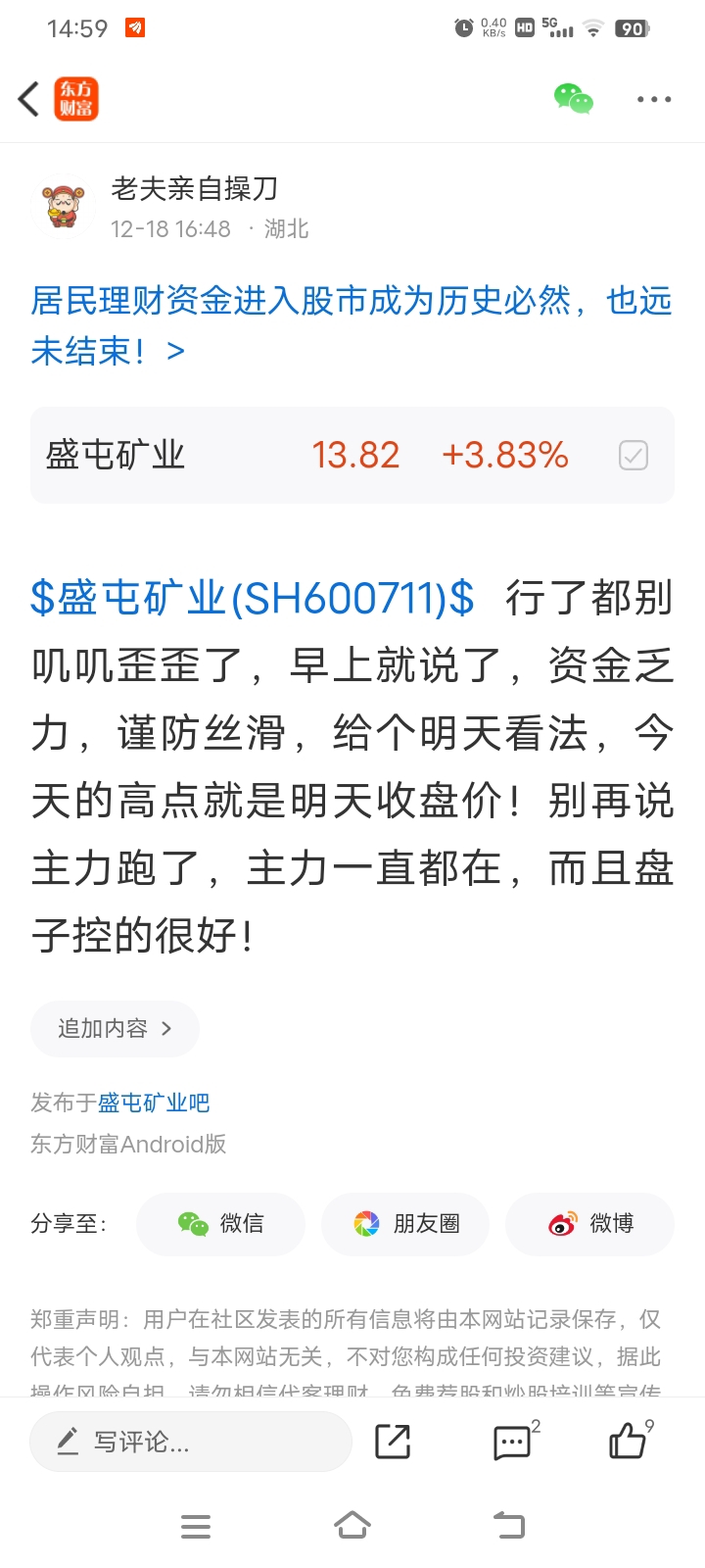 温馨提示: 1.根据《证券法》规定,禁止编造、传播虚假信息或者误导性信息,扰乱证券市场;2.用户在本社区发表的所有资料、言论等仅代表个人观点,与本网站立场无关,不对您构成任何投资建议。用户应基于自己的独立判断,自行决定证券投资并承担相应风险。《东方财富社区管理规定》