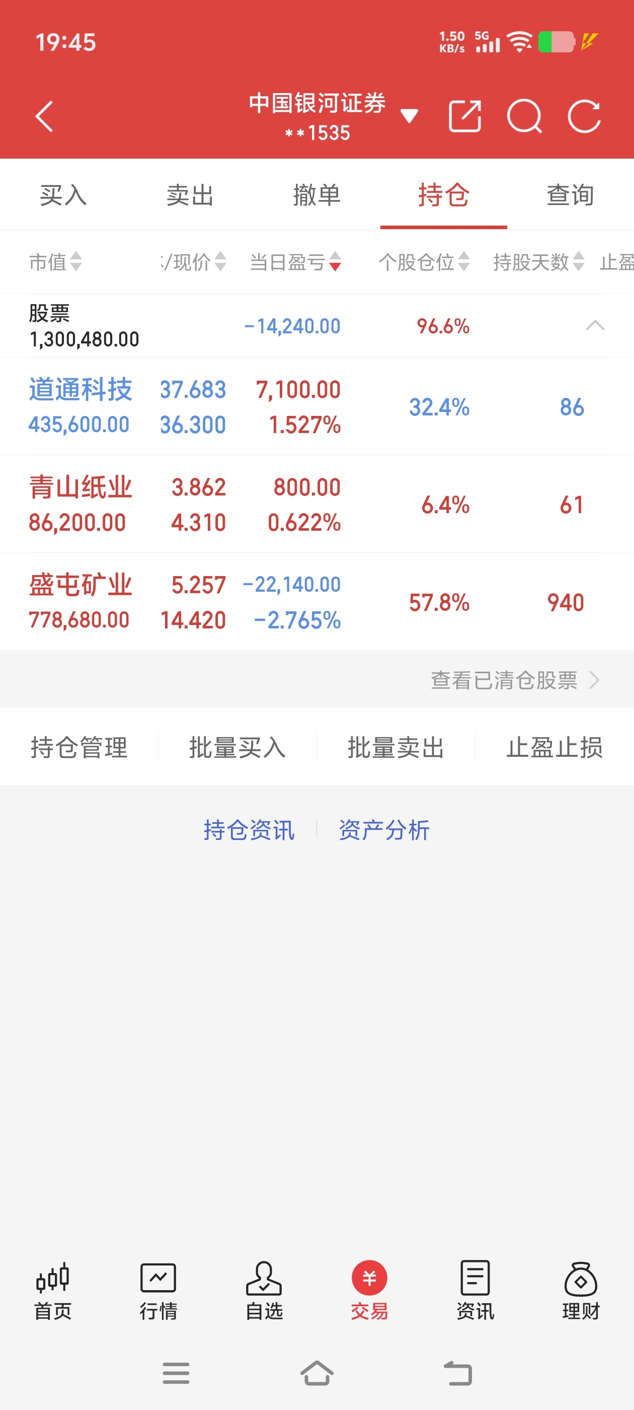持股940天仓位在回流前期的资金出去又慢慢回来了因为我是多头2块多都去了还怕你调