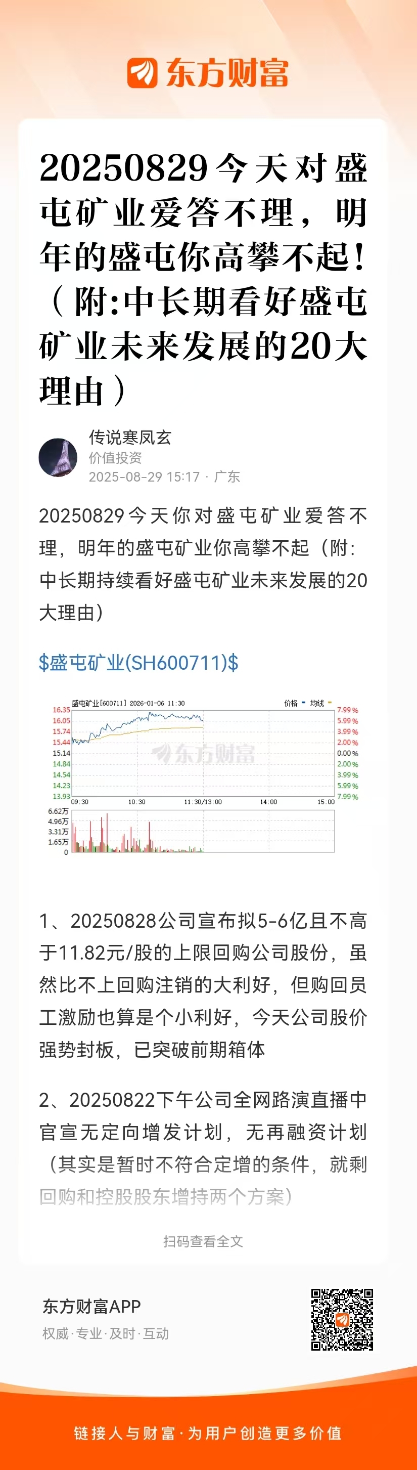 郑重声明:用户在财富号/股吧/博客等社区发表的所有信息(包括但不限于文字、视频、音频、数据及图表)仅代表个人观点,与本网站立场无关,不对您构成任何投资建议,据此操作风险自担。请勿相信代客理财、免费荐股和炒股培训等宣传内容,远离非法证券活动。请勿添加发言用户的手机号码、公众号、微博、微信及QQ等信息,谨防上当受骗!