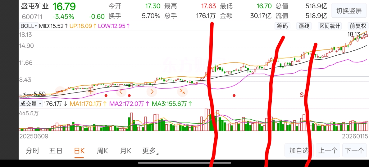 $盛屯矿业(SH600711)$ 放量对应一个高点,这次还没放量呢。
