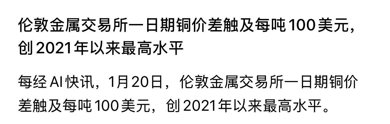 “一日期铜价差”即“Tom/Next”价差,是衡量现货与次日期货价格的溢价水平。当该价差飙升至每吨100美元,说明市场对即时交割的铜需求极度迫切,愿意支付高额溢价获取实物,这是典型的“现货紧缺、期货空头被迫平仓”特征,极易引发价格快速拉升。
