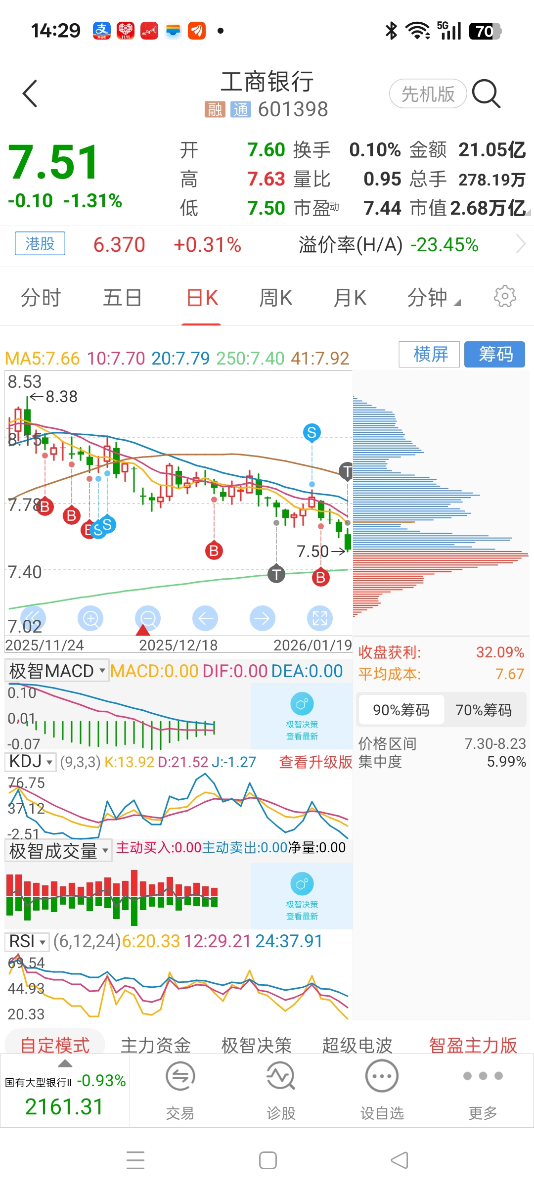 加仓到工商银行避险。