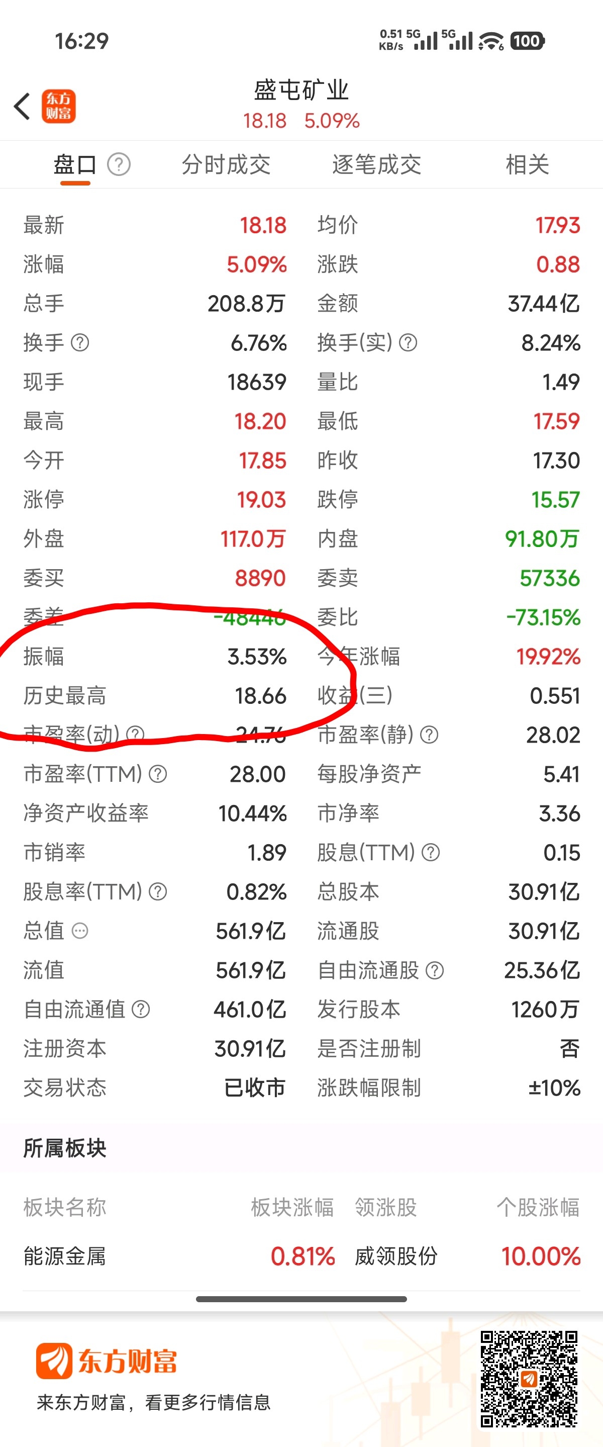 $盛屯矿业(SH600711)$ 东财都直接显示历史最高18.66了,不懂你们抖那些前复权后复权的小机灵做什么