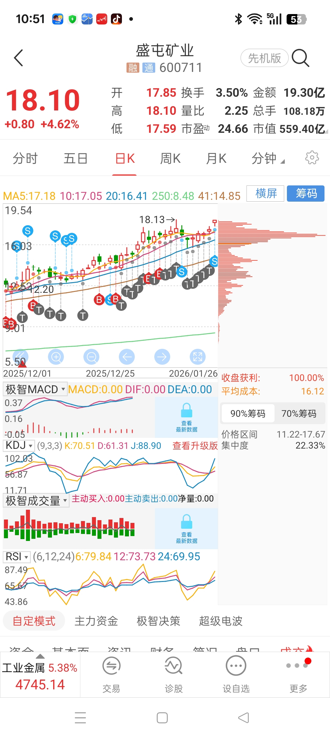 今天高位止盈$盛屯矿业(SH600711)$ ,又降低一个点多点接回,目前格外浮盈两个点。