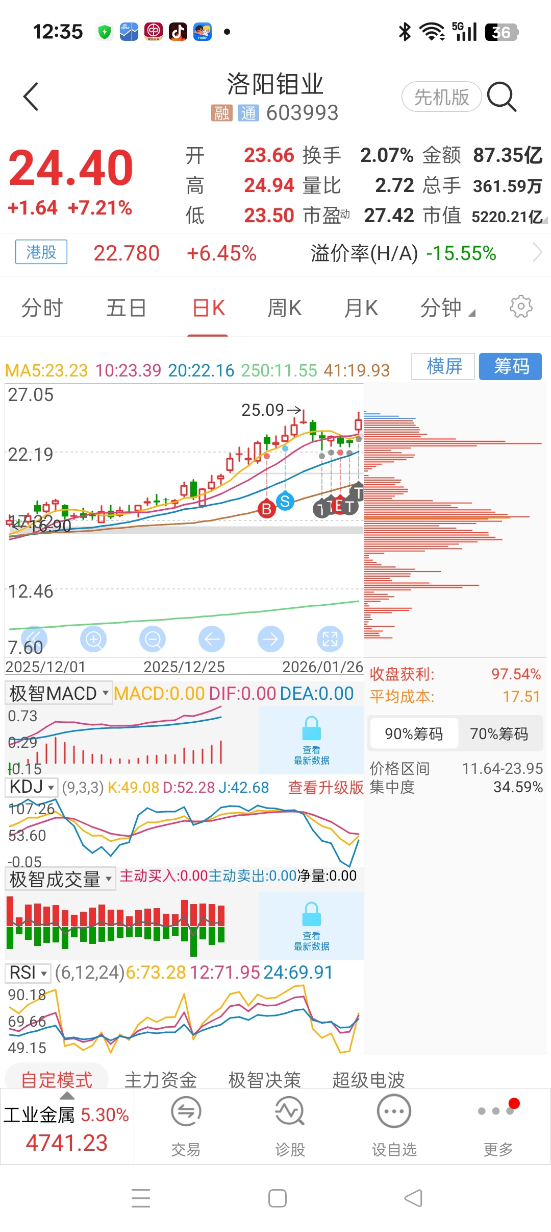 止盈$洛阳钼业(SH603993)$ ,踢飞了。不遗憾,获利五个多点,知足了。