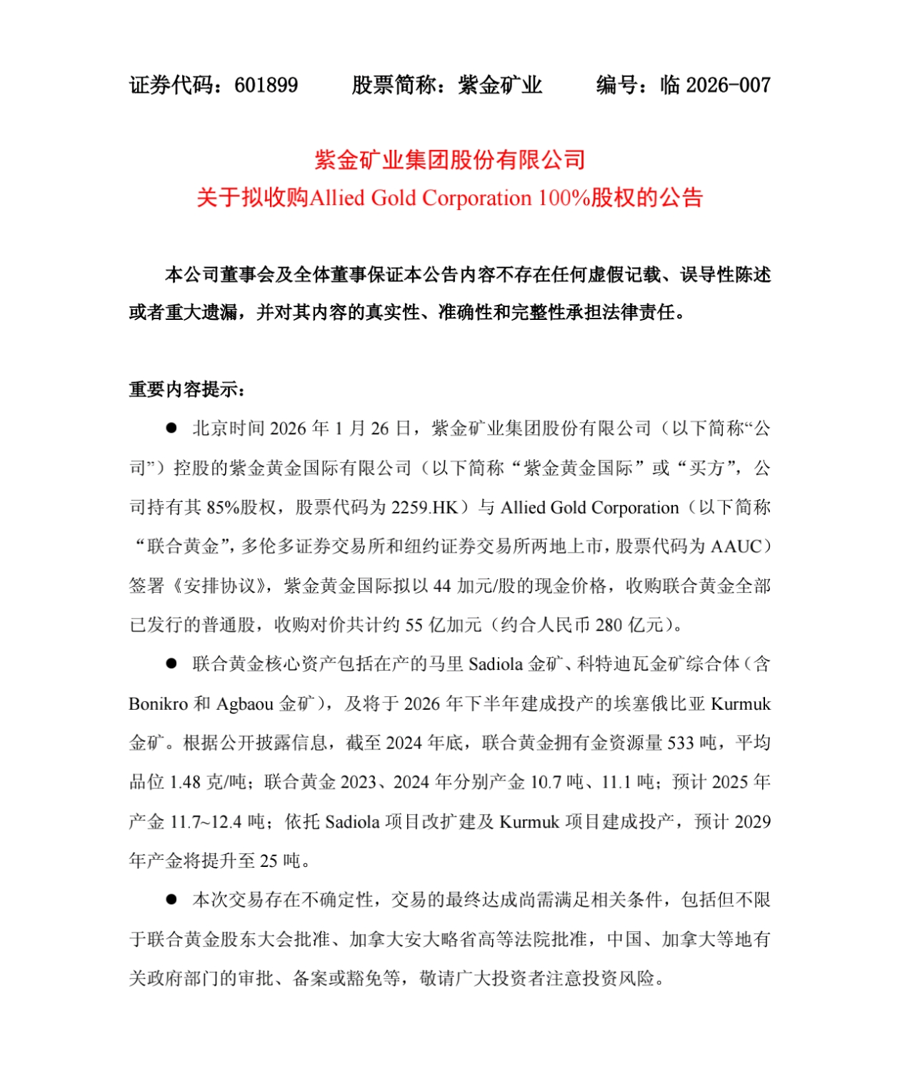 洛钼昨天出了收购金矿公告,今天引领有色板块,紫金今天出了收购公告,明天是不是该紫金带领有色冲锋了?严重怀疑这哥俩是不是商量好的轮流出利好呀?盛屯的收购金矿公告什么时候出呢?