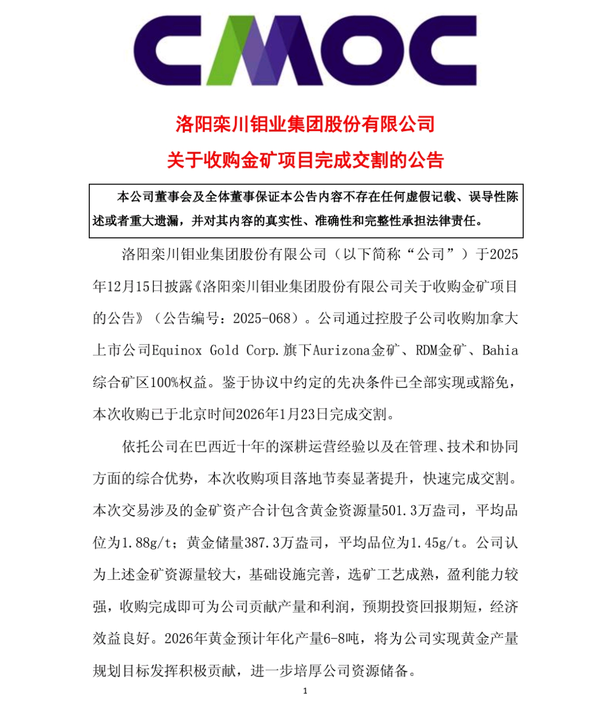 洛钼昨天出了收购金矿公告,今天引领有色板块,紫金今天出了收购公告,明天是不是该紫