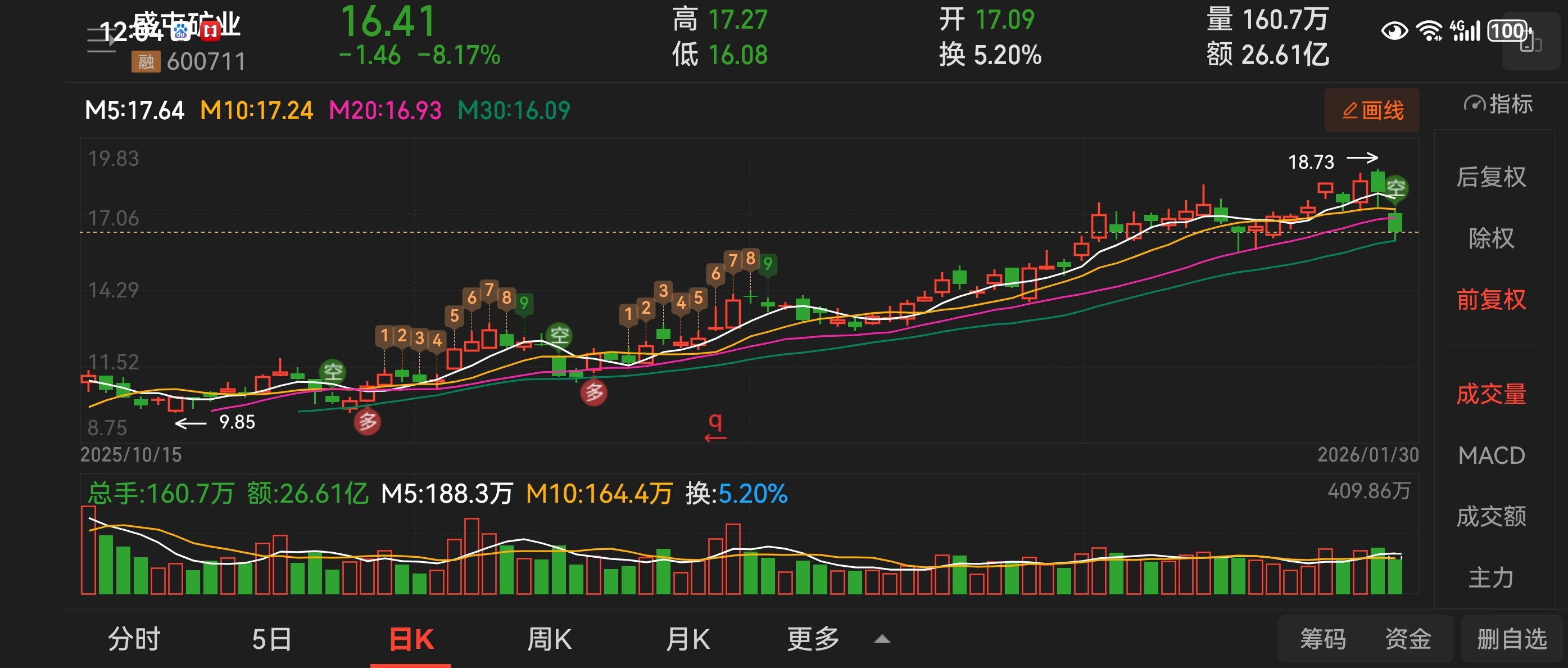 $盛屯矿业(SH600711)$ 上午回踩了三十日均线!下午关注一下回升行情
