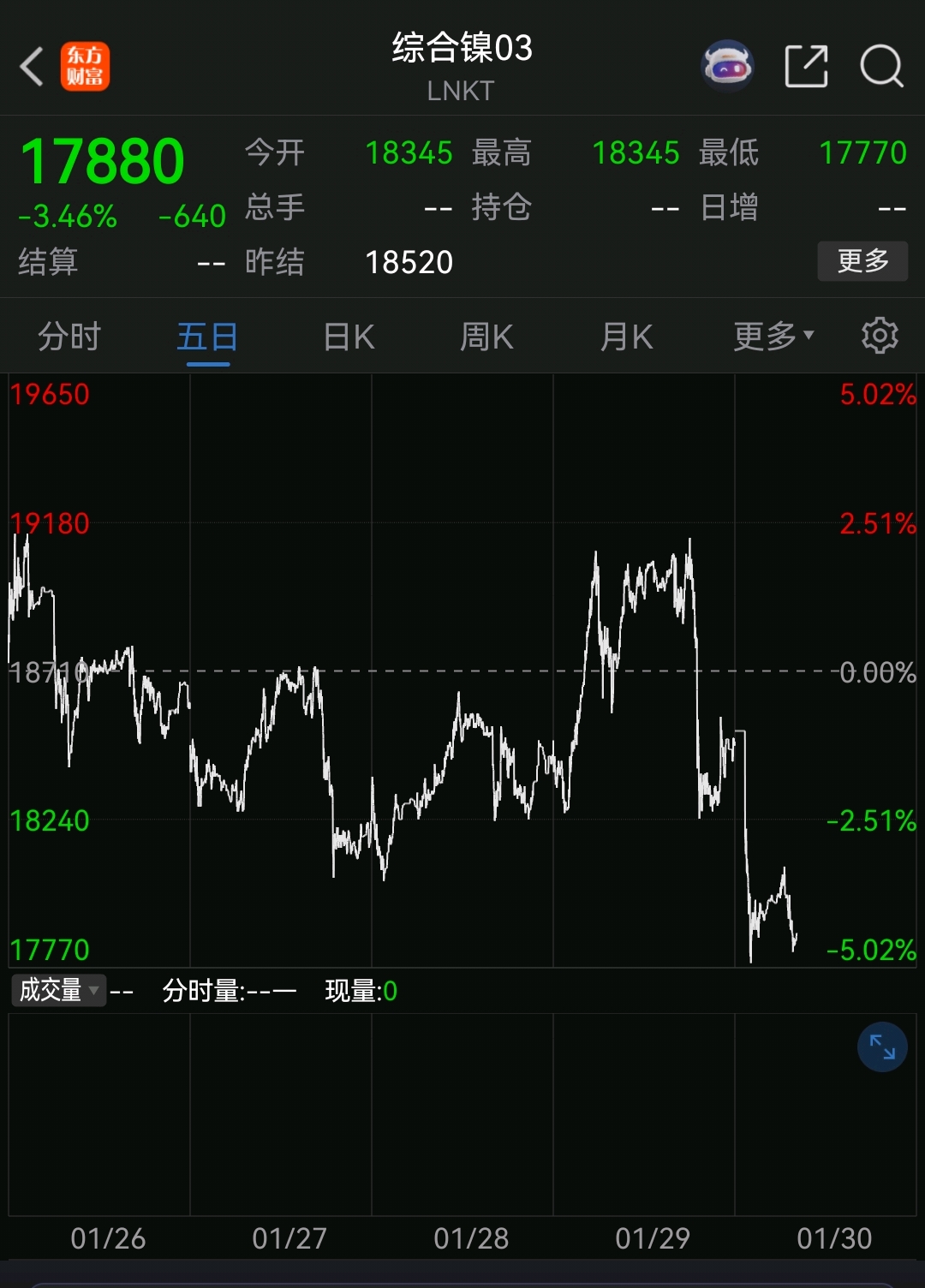 镍,确实今天收盘,比前天的价格低。