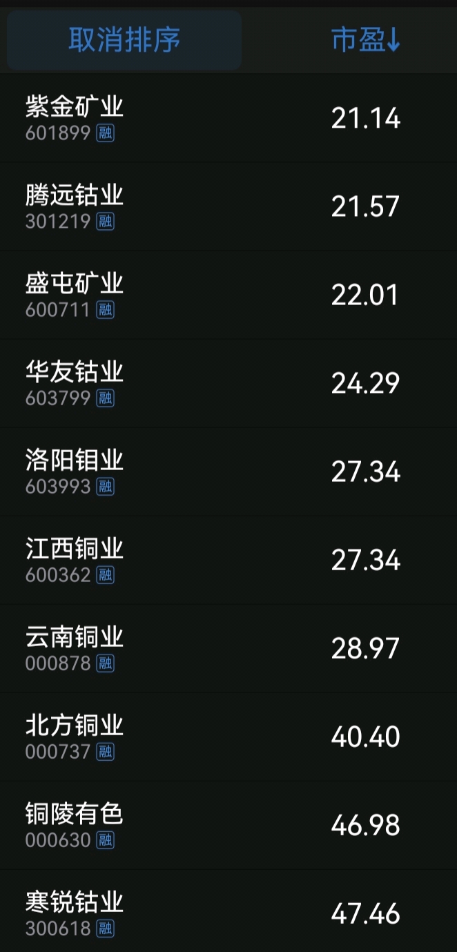 今天收盘后,铜钴企业市盈率情况