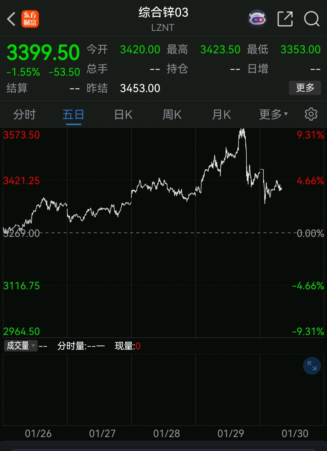 锌,今天收盘比前天来说,差不多。